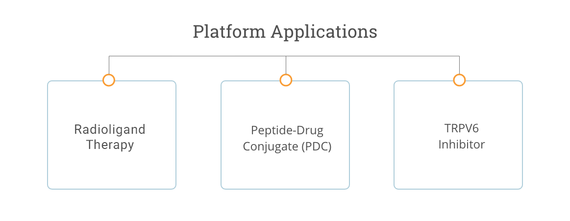 Applications of our platform currently include Radioligand Therapies that provide precise delivery of a therapeutic radioisotope directly to tumors, and Peptide-Drug Conjugates (PDC’s) that deliver potent cancer-killing payloads directly to tumors.